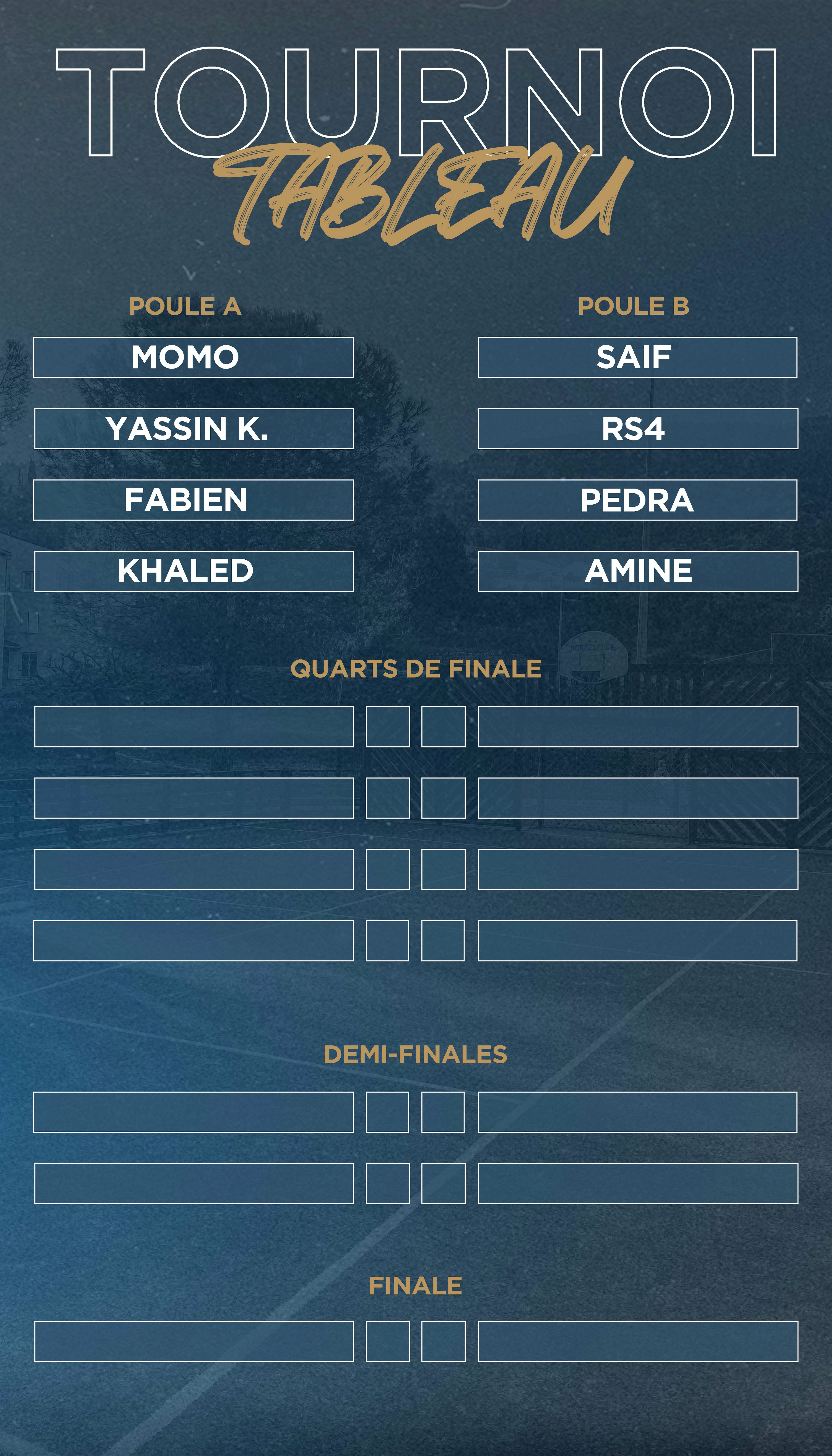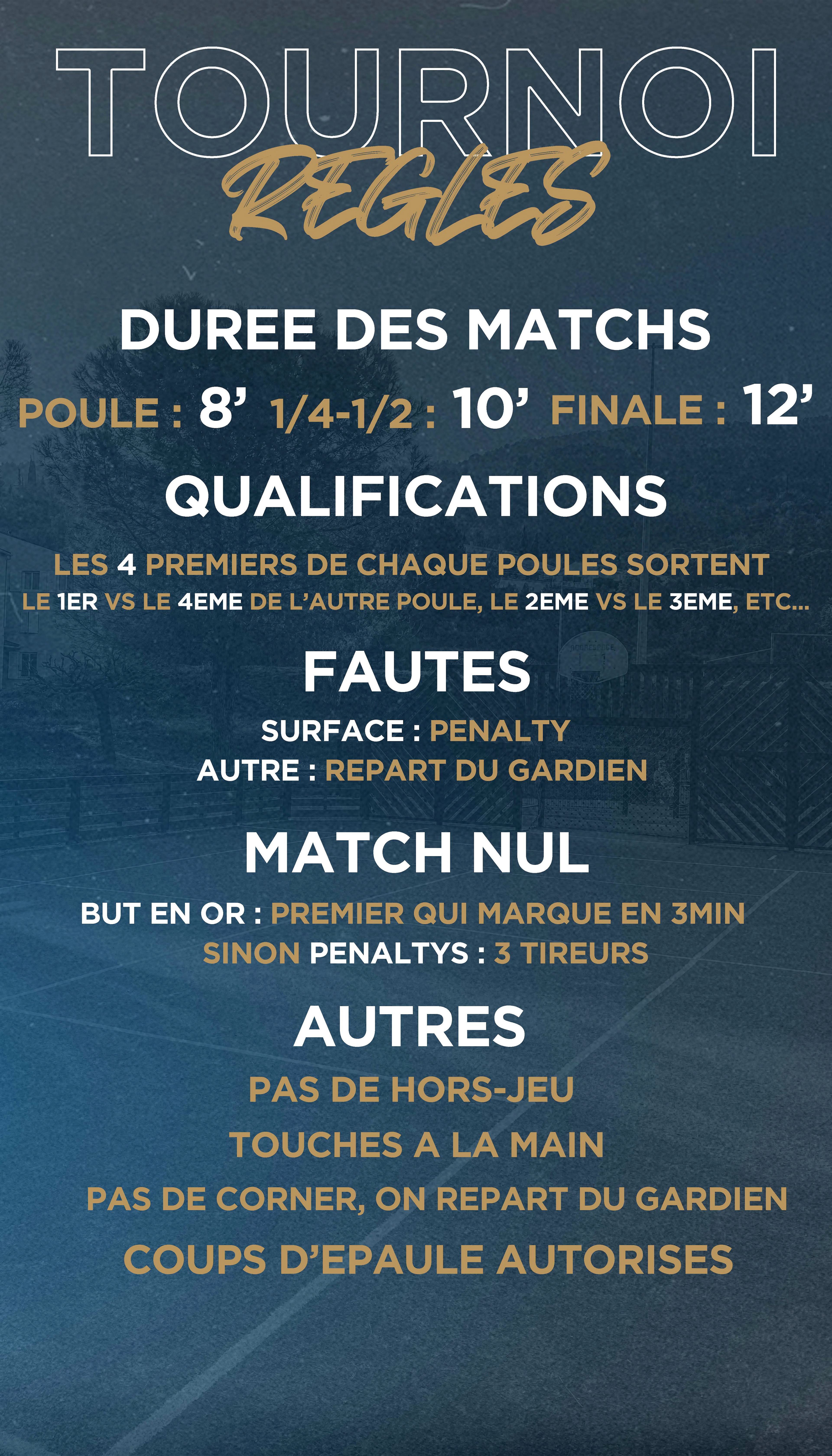 Suite à l'organisation d'un tournoi de football, j'étais chargé de réalisé les visuels annonçant le tournoi, les règles ainsi que le tableau de score.